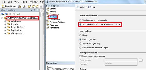 [IMPORTANT] Right-click on the top-level SQL Server icon and Select Properties, highlight Security and select the SQL Server and Windows Authentication mode (this is now a VMware requirement as indicated on page 241 of the vSphere 5.1 Installation and Setup Guide) and click OK.