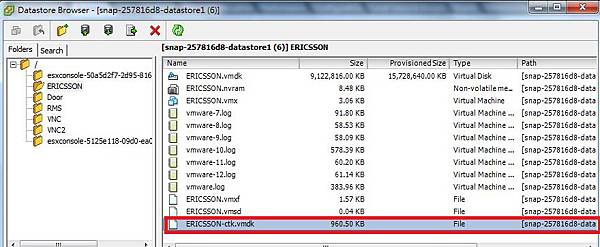 4.之後應可進入ESX 4.1系統,查看欲開啟VM內的資料,如有*-ctk.vmdk的資料,便把它刪除。