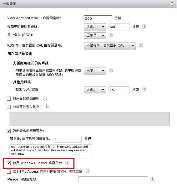 在全域設定內啟用「啟用Windows Server桌面平台」